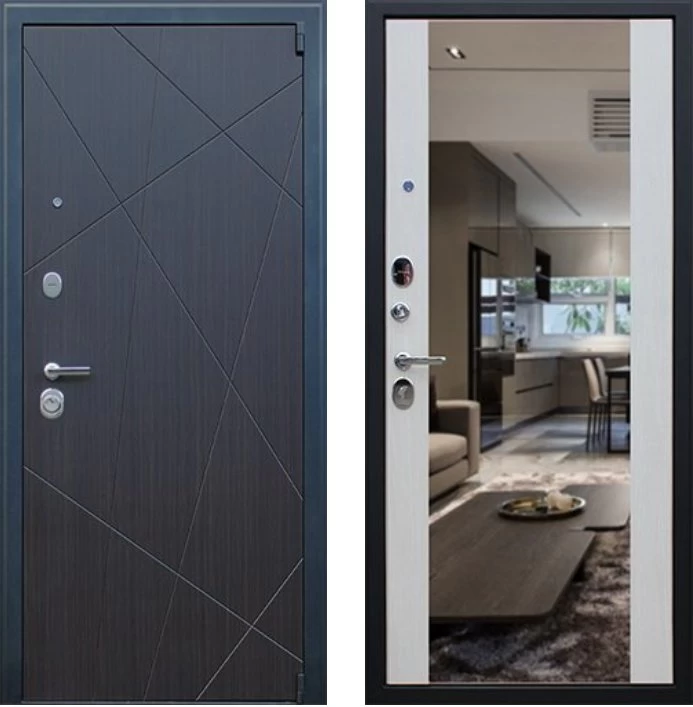 Надежная входная Дверь Вектор с зеркалом премиум класса по цене 48 933 руб. Большая толщина стали защитит от проникновения в ваш дом, квартиру или коттедж. Используется очень качественная фурнитура: замки, цилиндры, ручки, защелки. Покрытие и отделка двери изготовлено под внимательным контролем производителя. Дверь имеет долгий срок службы и гарантию.