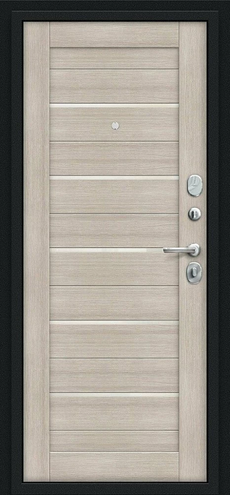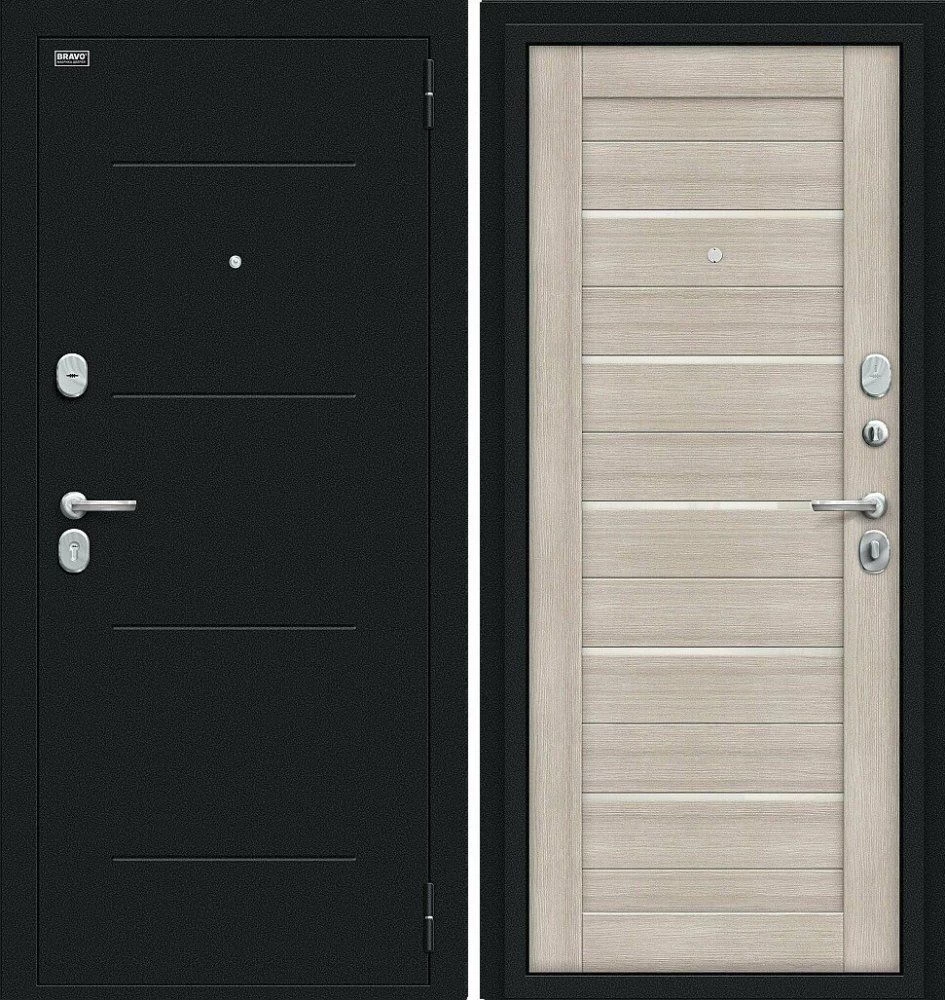 Надежная входная Браво Техно Kale Букле черное/Cappuccino Veralinga премиум класса по цене 34 033 руб. Большая толщина стали защитит от проникновения в ваш дом, квартиру или коттедж. Используется очень качественная фурнитура: замки, цилиндры, ручки, защелки. Покрытие и отделка двери изготовлено под внимательным контролем производителя. Дверь имеет долгий срок службы и гарантию.