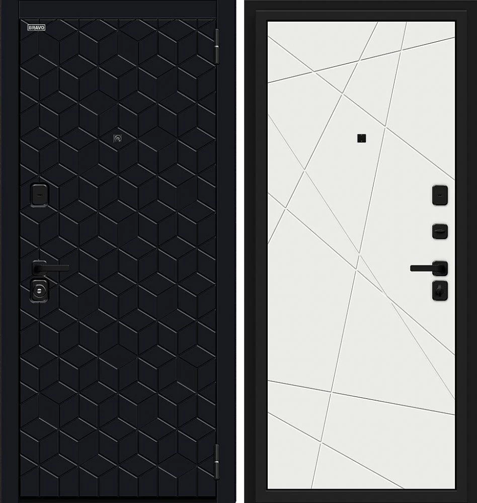 Надежная входная Дверь Браво Кьюб (RBE) Total Black/Super White премиум класса по цене 38 493 руб. Большая толщина стали защитит от проникновения в ваш дом, квартиру или коттедж. Используется очень качественная фурнитура: замки, цилиндры, ручки, защелки. Покрытие и отделка двери изготовлено под внимательным контролем производителя. Дверь имеет долгий срок службы и гарантию.