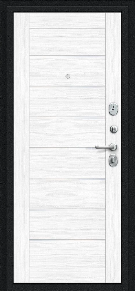 Надежная входная Дверь Браво Техно Букле черное/Snow Melinga премиум класса по цене 31 133 руб. Большая толщина стали защитит от проникновения в ваш дом, квартиру или коттедж. Используется очень качественная фурнитура: замки, цилиндры, ручки, защелки. Покрытие и отделка двери изготовлено под внимательным контролем производителя. Дверь имеет долгий срок службы и гарантию.