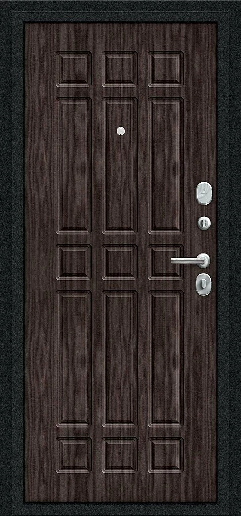 Надежная входная Входная дверь Мило Букле черное/Wenge Veralinga BR4303 премиум класса по цене 30 005 руб. Большая толщина стали защитит от проникновения в ваш дом, квартиру или коттедж. Используется очень качественная фурнитура: замки, цилиндры, ручки, защелки. Покрытие и отделка двери изготовлено под внимательным контролем производителя. Дверь имеет долгий срок службы и гарантию.