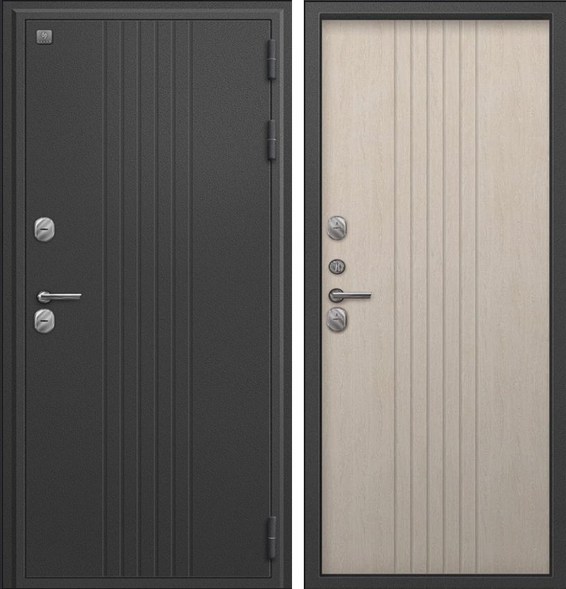 Надежная входная Дверь Термо-90 графит букле - седой дуб премиум класса по цене 37 233 руб. Большая толщина стали защитит от проникновения в ваш дом, квартиру или коттедж. Используется очень качественная фурнитура: замки, цилиндры, ручки, защелки. Покрытие и отделка двери изготовлено под внимательным контролем производителя. Дверь имеет долгий срок службы и гарантию.